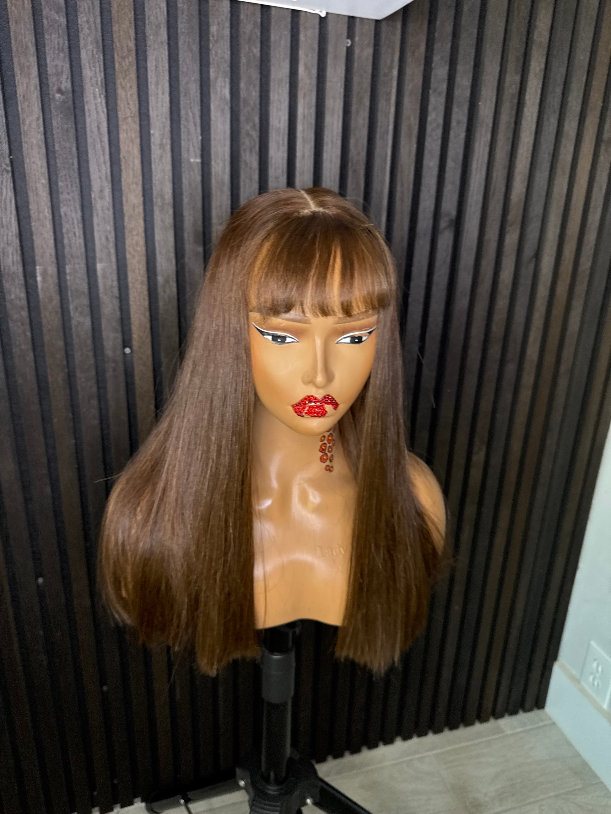 Raw human hair bone straight fringe brown
